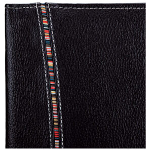 The Tribal Stripe A4 Folio is made from lichee leatherette with white contrast stitching and tribal stripe interior and exterior trims. Designed with 1 full-sized interior pocket and 2 small interior pockets and inside the folder, it includes 40 lined pages, an ID window and an elastic pen loop.
