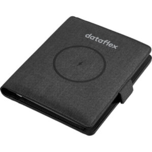 The Swiss Cougar Lisbon Wireless Charging Portfolio is a classy dual function office time essential to keep your organised and all your devices charged while on the go. Made from melange polyester, the folder has a full-length zip around closure that unzips to reveal a 128-page notebook on the inner right flap, while on the inner left flap there is a phone pocket, phone stand, card slots and includes a 5000mAh removable power bank that can be used as a portable charger or simply rest your device on the front cover and let the wireless charging do the rest. Available in grey and makes for an excellent corporate gift. Packaged in a pre-branded Swiss Cougar gift box.